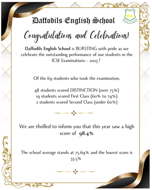 Students are appreciated and awarded for 100% attendance, academic proficiency and general proficiency by the school for all grades from 1 to 10.